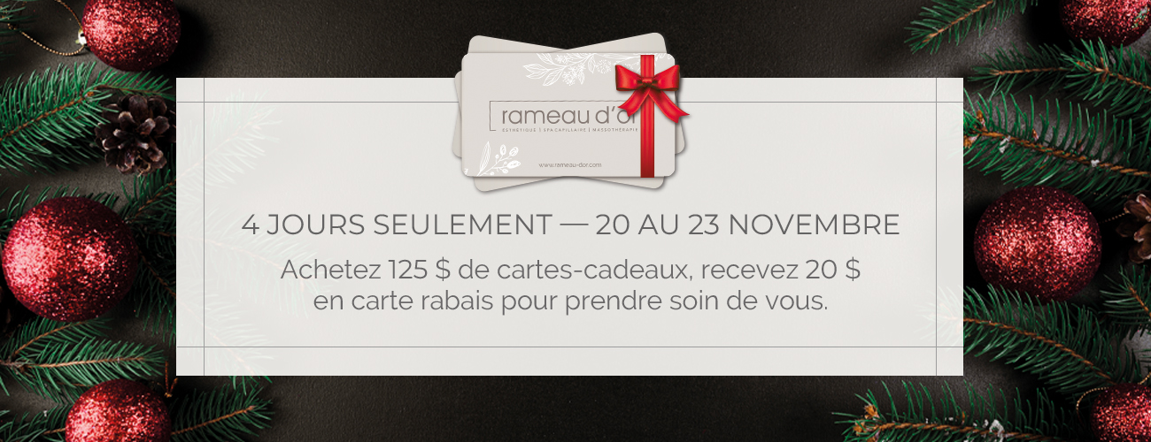 ![]() Soin du visageAlliant beauté et bien-être, laissez-vous dorloter par nos esthéticiennes pour un moment de détente. ![]() MassothérapieL'espace d'un moment, laisser nos massothérapeutes prendre soin de vous et ne vous préoccupez plus de rien. ![]() Spa capillaireUn moment de bien-être exclusif qui repose le corps et l'esprit, pour des cheveux sains, légers et lumineux. Envie d'un moment de détente? Découvrez nos soins d'exception pour ralentir les effets du temps Inspiré par la nature, nous privilégions des produits naturels de haute qualité sans sulfates, sans parabènes, sans huile minérale et non testé sur les animaux. Parfait pour votre corps et votre esprit.